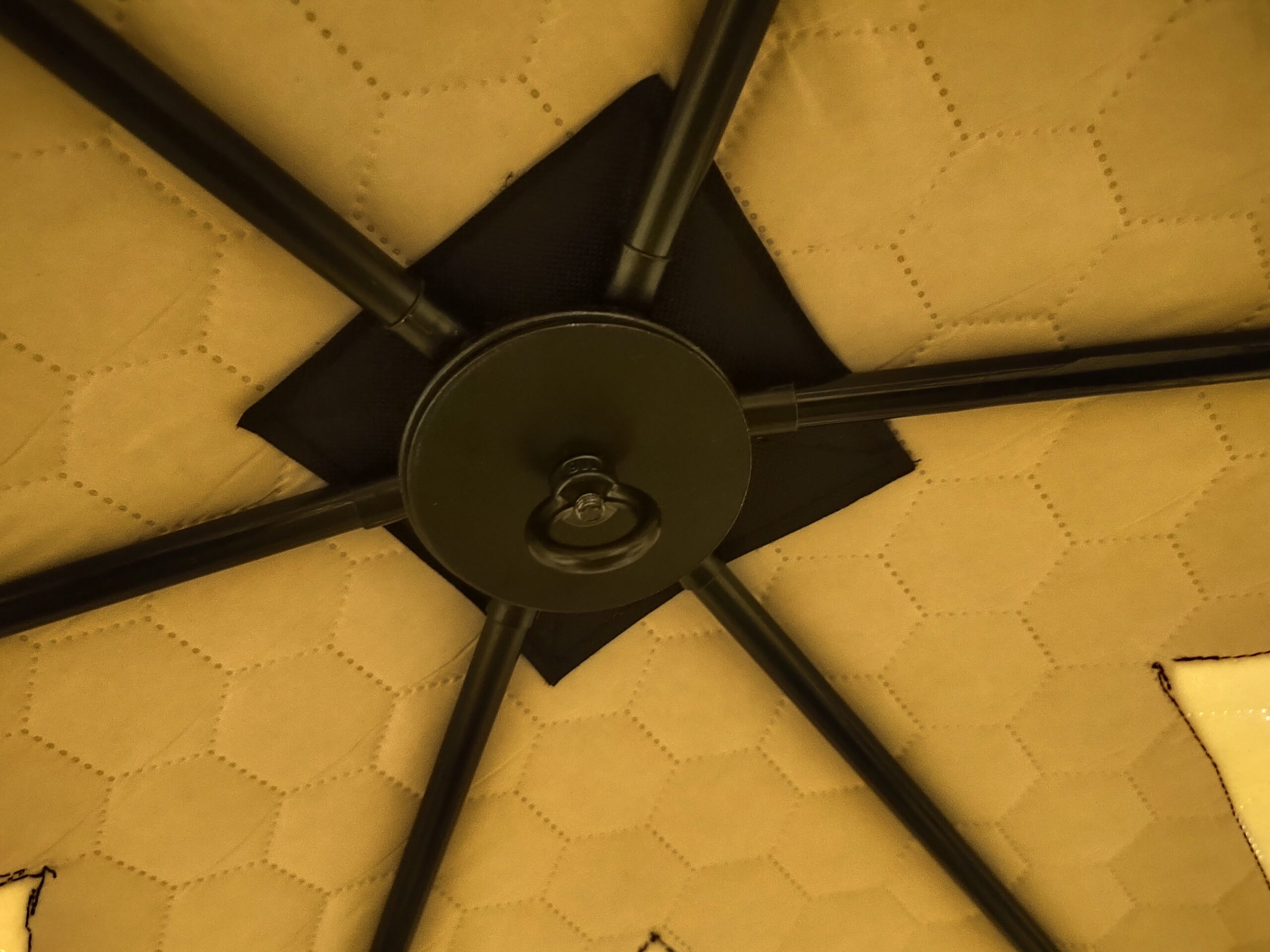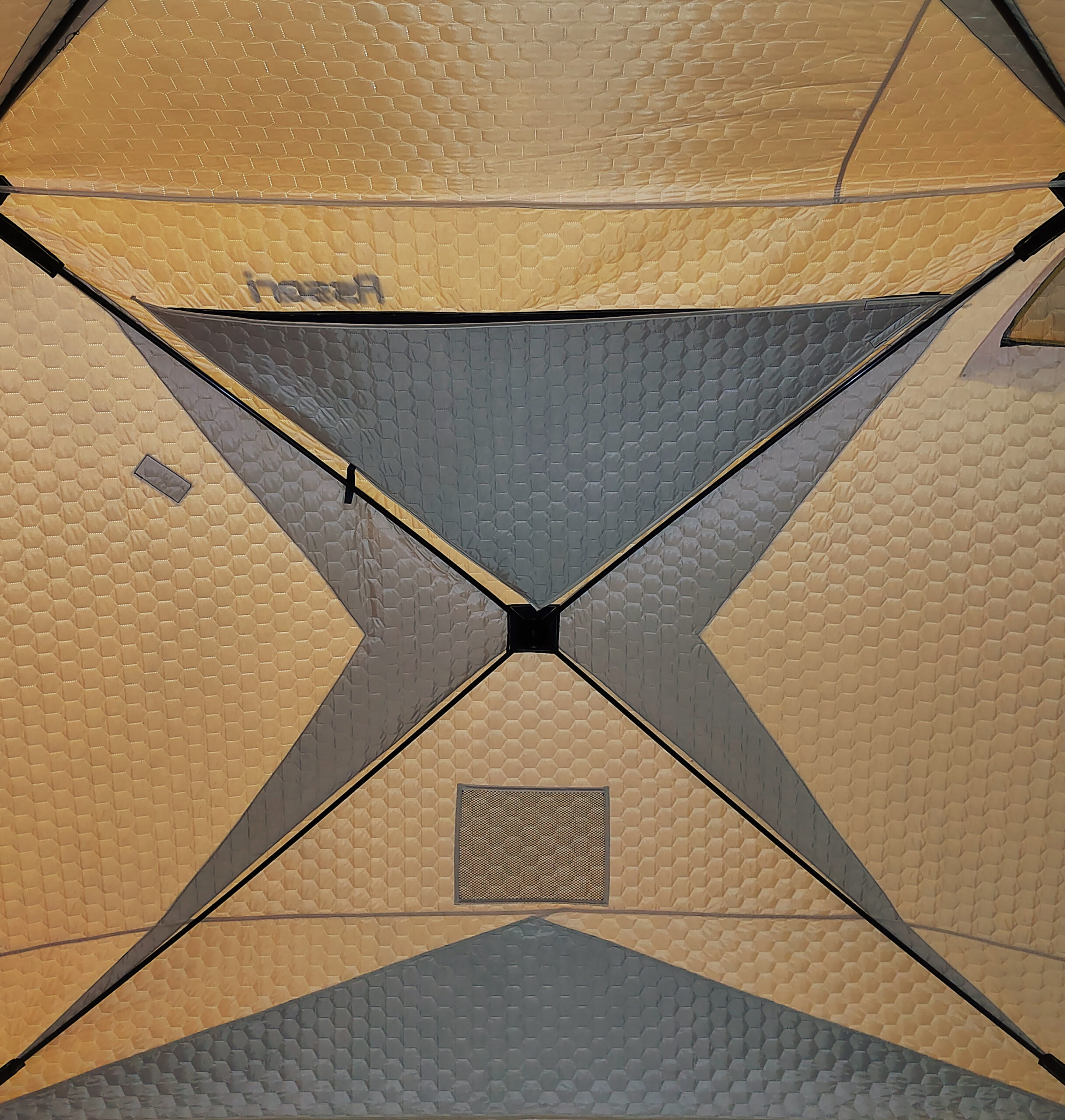 Suured eemaldatavad aknad mõlemal küljel tagavad suurepärase nähtavuse isegi istudes. Aknaid saab sulgeda soojusisolatsioonimaterjalist aknakatetega, mis tagavad täiendava soojuskaitse. Telki sisse integreeritud raam võimaldab teil selle paari minutiga lahti võtta ja kokku panna. Spetsiaalsed hinged seintel ja laes pakuvad mugavust monteerimisprotsessi ajal.
