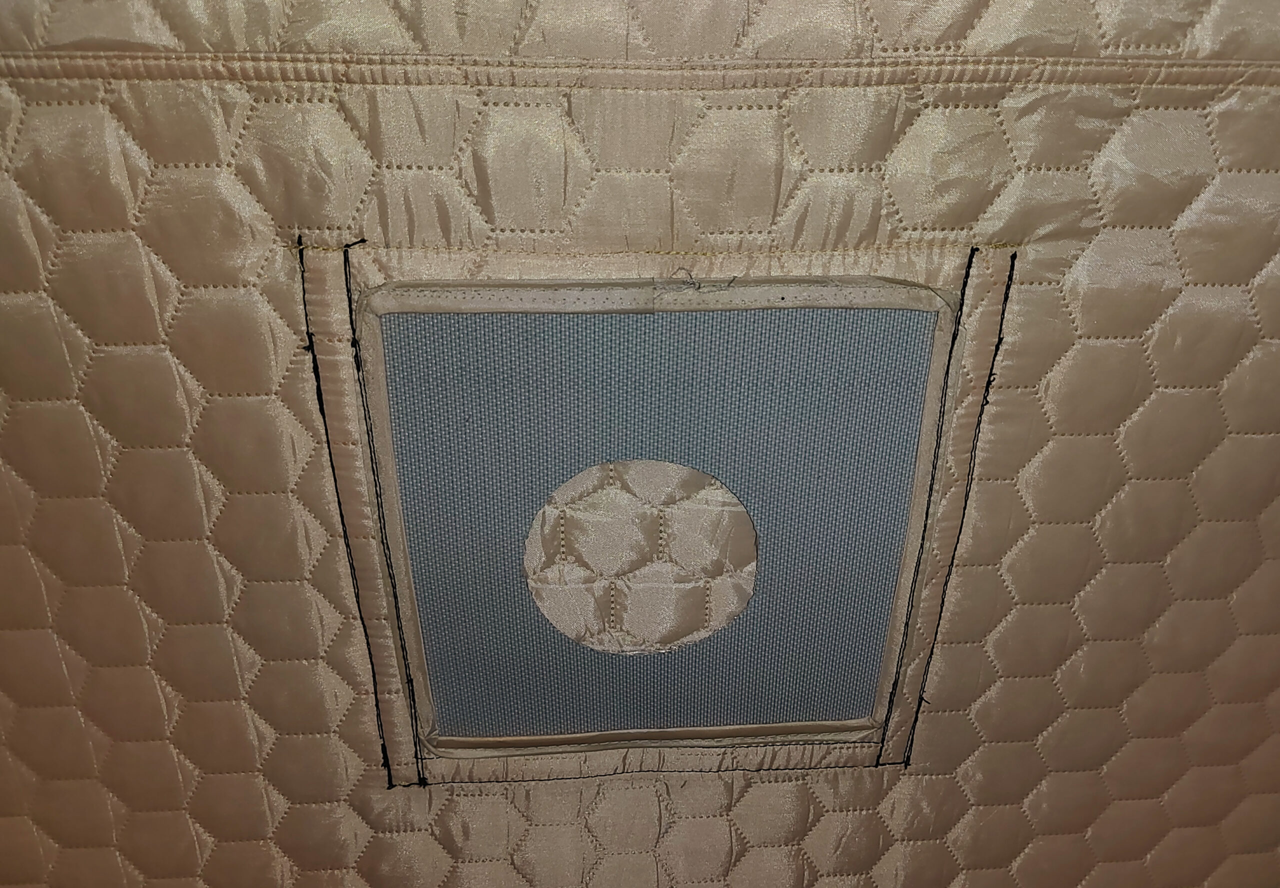 Võimalik paigaldada telgiahi, mille jaoks on laes auk korstna jaoks, mis on suletud mugava Velcro takjakinnitusega. Kaks ventilatsiooniava külgedel tagavad värske õhu juurdevoolu.